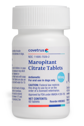 Covetrus® Brand Maropitant Citrate Tablets are an antiemetic indicated for the prevention of acute vomiting and the prevention of vomiting due to motion sickness in dogs. Veterinarians can also prescribe them for their canine patients undergoing chemotherapy to help mitigate vomiting that may occur as a side effect.