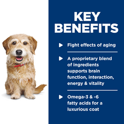 Hill's Science Diet Adult 7+ Senior Vitality Small and Mini Chicken and Vegetable Stew provides nutrition to improve everyday ability to get up and go