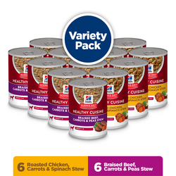 Hill's® Science Diet® Healthy Cuisine Variety Pack adult canned dog food balances delicious flavors and high-quality nutrition to provide a dog with a well-designed diet. This dog food offers the energy needed to continue an active lifestyle, fueling dogs with high-quality protein and powerful antioxidants.