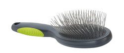 The BUSTER pin brush breaks up the coat, removing loose hair and debris. Brushing distributes natural oils, leaving a shiny healthy coat. To use, brush with long strokes in direction of hair growth.