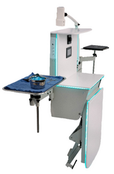 The Olympic Elite Folding Exam Station™ is a wall-mounted unit designed to replace all the cabinets and work surfaces in your exam room. With a built-in scale, two integrated power strips, a dedicated storage shelf, and two swing arms that can hold up to four pieces of ancillary equipment, you can now work in ergonomic comfort with everything you need in front of you and at your fingertips. You’ll also enjoy the convenience of integrated USB ports for keeping your laptop and phone well charged. And because everything in your exam room is off the floor, cleanup between procedures has never been easier or quicker. The green glowing lights of the Olympic sterility indicator system provide assurance that the exam room has been thoroughly cleaned in preparation for a client’s visit. The Olympic Elite Folding Exam station also features minimalist styling, white Corian surfaces, on-board scale, integrated exam lighting, and a laptop station.