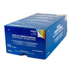 SyrFlex Cohesive Bandage wraps are durable, self-adhering bandages that come in 2" and 4" widths and can be used in a variety of different situations. The bandages include an easy-start tab making them quick and easy to unroll. The strong elastic can be torn without the use of scissors for ease-of-use. They are also water resistant to prevent the holding of moisture, as well as slip-resistant, making sure the bandage stays in place. Controlled compression provides even support and security without constricting.