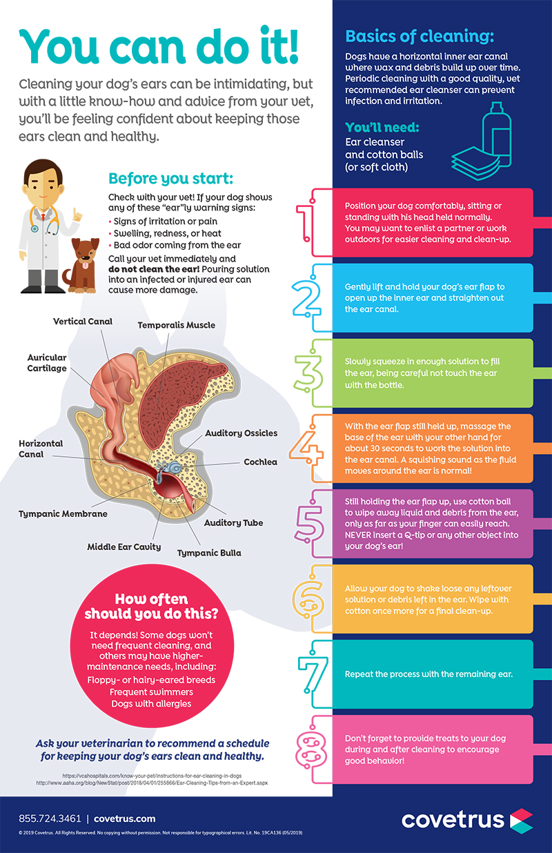 Help your clients learn the basics of cleaning their dog's ears with this informative infographic.