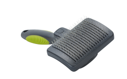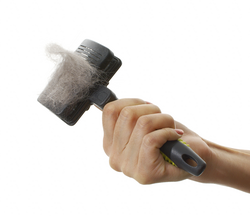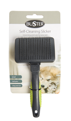 The BUSTER self-cleaning slicker brush is a gentle and effective multi-purpose grooming tool for de-matting and removing unwanted loose hairs. It's retractable pins save you valuable clean-up time. When the pad is full, release hair by pushing the button on the back of pad.