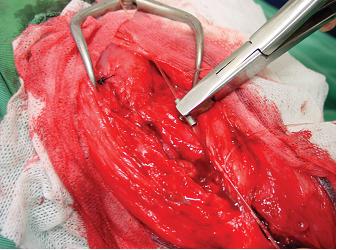 By placing some kind of prosthesis from the lateral femur to the proximal tibia in the same plane as the CrCL the stifle becomes stable and maintains a full range of movement. Various materials have been tried over the years; braided nylon, monofilament nylon, stainless steel wire and some of the long term absorbable sutures. All typically fail at between 6 or 8 weeks. This failure does not affect the outcome of the procedure, stability coming as it does from peri-articular fibrosis in the long term.